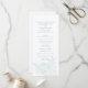 Su día especial merece detalles especiales. Este programa azul y blanco presenta una tipografía clásica y un impresionante dibujo de la línea floral azul.