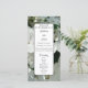 Este es un elegante programa de bodas floridas de flores blancas con diseño de fotos de flores de horangea blanca sobre un fondo verde del bosque. Es perfecto para una celebración de bodas en el jardín de verano o otoño.
