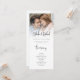 Programa de Boda de Guión Elegante Imprimible con descarga digital o impresa. Elegancia contemporánea con tu foto al borde superior detrás de una capa de matiz graduada con el texto parcialmente sobrepuesto en la parte superior. Simplemente reemplace la imagen de ejemplo con la suya propia y personalice fácilmente las palabras a sus propios detalles.