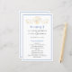 Este elegante diseño costero cuenta con una elegante concha dorada y un diseño de olas con un borde azul. Personalice los detalles de la ceremonia de su boda. Perfecto para bodas de playa, verano o náuticos. Diseño ©Rosalind Moore, Diseños de las Lanes de cerezo.