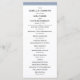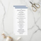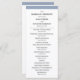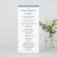 Este elegante y elegante programa de bodas presenta un texto negro de moda sobre un fondo blanco, bordeado por un azul polvoriento.