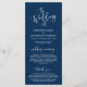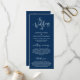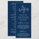 El boda de, Elegante escritura Romántica Moderna de la Marina Azul, tarjeta del Programa de Ceremonia Boda. Está diseñado con acento de desplazamiento que puede ser personalizado con texto personalizado/ personalizado para su fiesta nupcial, detalles de la ceremonia, notas conmemorativas y mensaje de agradecimiento. Si está buscando otros tipos y tamaños de tarjetas de programa, busque en nuestra sección de colección de tarjetas de programa correspondiente.