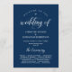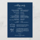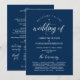 Esta es la tarjeta del programa de la ceremonia del boda, en elegante y elegante tema de escritura azul de la Marina. Está diseñado con acento de desplazamiento que puede ser personalizado con texto personalizado/ personalizado para su fiesta nupcial, detalles de la ceremonia, notas conmemorativas y mensaje de agradecimiento.