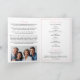 Un bonito y elegante programa funerario doblado adornado con elegantes y sencillas hojas verdes de eucalipto y rosas rosas rosas clásicas. En la parte delantera hay una foto en forma de retrato oval, mientras que en el interior hay espacio para el obituario, el orden de servicio y una foto familiar. La parte trasera ofrece una sección de personalizable para un poema, oración o reconocimiento. Perfecto para un funeral, un monumento o una celebración de la vida, este diseño ofrece una manera sincera de honrar a tu ser querido.