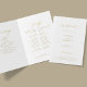 Moderna y minimalista tipografía simple, moderna ceremonia plegada de oro y blanco limpio y plantilla de programa de bodas fiestas con un guión de caligrafía de moda en moda. +++++++++++ Fácil de personalizar con tu texto en el frente y en el interior!