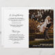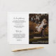 Moderno programa de bodas plegadas con presupuesto que incluye un diseño sencillo con sus nombres en un elegante guión escrito a mano en la parte superior izquierda y los detalles de su boda en alineación derecha en la parte inferior derecha, sobre su foto favorita. La letra a mano de moda añade un toque romántico a este diseño minimalista.