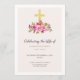 Orden de servicio en memoria funeral floral rosa y dorada con cruz