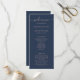 Elegante programa personalizado de boda azul marino y rubor con un moderno tipo de letra de guión. Elementos coincidentes disponibles.