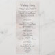 Este diseño romántico presenta un elegante fondo de perla blanca con los detalles de la ceremonia de boda y agradecimientos en la parte delantera, los miembros del cortejo nupcial, y el monograma del corazón en la parte trasera. Disponible en varios colores para coordinar con el tema de su boda. Diseñado para coordinar con la colección de bodas "Romantic Scroll Hearts & Calligraphy".