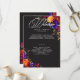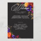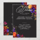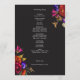 Abran la belleza opulenta de una cosecha floral de otoño con nuestro cautivador programa de bodas. El telón de fondo negro, dramático y suave, es el lienzo perfecto para un ramo increíblemente realista. Imaginen una vibrante explosión de color, con rosas en naranja y magenta oscuro, con pequeñas flores magenta rosa y violetas moradas y junto a mamáes de melocotón y otras florales vibrantes. El frondoso follaje verde oscuro completa el conjunto, añadiendo un toque de elegancia natural. Un guión elegante y vintage anuncia tu tarjeta, mientras que los detalles de tu boda son de un tipo de letra limpio y moderno. Este diseño cautivador es perfecto para cualquier temporada, reflejando la apasionada intensidad de tu historia de amor. Este encantador diseño crea una invitación inolvidable para celebrar su día especial. Creado por Simply Farmhouse Press.