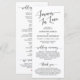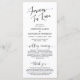 Para siempre enamorada, elegante escritura romántica-negra moderna, tarjeta del programa de ceremonias Bodas. Está diseñado con acento de desplazamiento que puede ser personalizado con texto personalizado/ personalizado para su fiesta nupcial, detalles de la ceremonia, notas conmemorativas y mensaje de agradecimiento. Si está buscando otros tipos y tamaños de tarjetas de programa, busque en nuestra sección de colección de tarjetas de programa correspondiente.