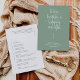 Este elegante programa de apartamentos para bodas presenta una caligrafía elegante y una tipografía sencilla de sans serif sobre un fondo verde sabio para un limpio aspecto minimalista y moderno, que es una hermosa manera de informar a sus invitados el orden de su ceremonia boda y de darle un favor nupcial a sus invitados. La sencillez de este diseño le da un toque de elegancia a su boda. Funciona bien con muchos temas bodas y sin duda una gran adición a su papelería boda. Sólo tiene que personalizar los nombres y la redacción en unos pocos pasos fáciles y personalizar el programa para darle un agradable toque personal. Nota: La elegante caligrafía de la frase "amar, reír y felizmente siempre después" junto con las líneas y otras obras de arte y elementos gráficos no pueden ser editadas, eliminadas ni movidas. Están arreglados.