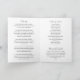 Programa Funeral Elegante con un diseño sencillo que incluye la vegetación de eucalipto verde salado de color agua en la esquina superior izquierda y en la esquina inferior derecha junto con "In Loving Memory", y una foto de tu ser querido. El interior tiene el obituario, el orden de servicio y la oración. La parte posterior tiene una plantilla para que añada un poema o cita y reconocimientos. Este programa plegado puede ser utilizado para un funeral, servicio conmemorativo o celebración de la vida.
