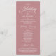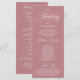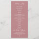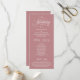 Esta elegante y atemporal tarjeta de programa de boda presenta un diseño de tema minimalista de rosa polvoriento con una sofisticada tipografía caligráfica para un toque clásico. Perfecta para ceremonias formales, el diseño limpio te permite presentar claramente tu orden de servicio, fiesta de boda y una nota de agradecimiento sincero a tus invitados. Personalización Fácil, simplemente use los campos de plantilla proporcionados para agregar sus nombres, fecha de boda, lugar y detalles de la ceremonia.