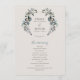 Este elegante programa de bodas de moda presenta flores de acuarela pintadas en tonos azul y rosa. Personalízalo con tu propio texto usando las plantillas proporcionadas. Incluso hay espacio para incluir tu propio mensaje de agradecimiento personal a tus invitados. El color de fondo se establece en un color neutro de cáscara de huevo, y se coordina con nuestra colección de bodas "Garden Escudo" en Eggshell. No dude en elegir un nuevo color de relleno para que coincida con el tema de su boda. Haga clic en el botón "personalizar" para dejar espacio a más o menos texto o para aumentar o disminuir el tamaño de las fuentes según sea necesario.