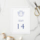 Escudo del Monograma Azul de Regencia, número de tabla del boda. Escudo de estilo barroco de inspiración vintage. Características, elegante y elegante diseño de tipografía azul mezcla de escritura y negrita. Tenga en cuenta que las tarjetas de número de tabla deben solicitarse individualmente.