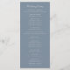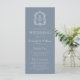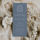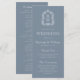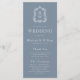 Este elegante programa de bodas de inspiración vintage presenta un par de iniciales en monograma blanco con una fuente serif abierta por encima y por debajo de una línea divisoria y rodeado por un escudo botánico de arte lineal sobre un polvoriento fondo azul.