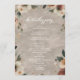 Presenta un toque muy bien diseñado a tu ceremonia con nuestro Programa de Bodas Eéreal Elegance. Diseñado para complementar el estilo cohesivo de nuestra suite boda cottagecore, este programa cuenta con un diseño floral de color boho, que envuelve todos los detalles de la belleza natural. Disponible en clásicas texturas blancas y de cinco acuarelas (Ethereal Veil, Sage Whisper, Rosewood, Clay Ember y Rustic Garnet), cada programa ofrece un marco delicado que realza la estética romántica y elegante de su día. Los motivos florales enmarcan con gracia la información esencial de su ceremonia, desde el orden de los acontecimientos hasta los nombres de la fiesta de boda. Este programa de bodas no sólo sirve como guía para sus invitados, sino también como un querido conservador de su día especial. Cada elemento, desde los tonos suaves hasta la caligrafía artística, está pensado para crear un ambiente armonioso y acogedor en tu ceremonia. Invite a sus invitados a sumergirse en la historia de su amor y el viaje de su nuevo comienzo con nuestro programa de bodas Ethereal Elegance. Explore la colección Ethereal Elegance y deje que la narrativa de su día de bodas sea contada en tonos que bailan entre las líneas clásicas y contemporáneas, arraigando y grandeza, simplicidad y esplendor. Este programa no es solamente un llamado a reunirse; es una invitación a compartir la belleza de un amor que es tan perdurable como la tierra bajo nuestros pies y tan conmovedor como los vientos que susurran.