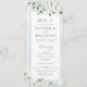 Moda moderna acuarela color blanco eucalipto floral verde y marco dorado de borde sobre un polvoriento fondo azul, con escritura a la moda, elegante y elegante, grandes programas de boda para boda rústico, boda botánico y boda en la playa. Ver todas las piezas coincidentes de la colección