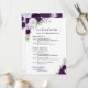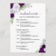 Estas hermosas tarjetas están diseñadas para que tus invitados conozcan el horario de tu celebración de boda. El diseño rústico boho chic incluye rosas pintadas a mano con acuarela, hojas de eucalipto y follaje de jardín en tonos de púrpura, ciruela y lavanda. La parte delantera tiene una lista de eventos para todo el fin de semana, y la parte trasera tiene un cronograma detallado para el día de la boda en sí. Una excelente adición a una bolsa de bienvenida de boda, y una forma maravillosa de agradecer a tus invitados por celebrar contigo.