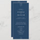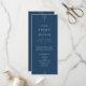 Este programa de boda de la Colección Everly presenta un refinado diseño art déco en azul marino profundo con tipografía blanca crujiente y elegantes acentos de línea. La disposición editorial y los detalles geométricos establecen un ambiente clásico, moderno y retro.