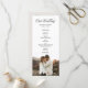 Este moderno programa de ceremonias del día de la boda es fácil de personalizar para su gran día. Los colores de fondo se pueden personalizar fácilmente para coordinar con el tema boda. Utilice la parte posterior para enumerar los participantes o para proporcionar otra información.