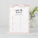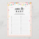 Fiesta temática de la fiesta de la pequeña ducha con coloridas luces de cuerda y confeti. Nombrar al bebé - encontrar un nombre para cada letra del alfabeto. ¡El primero que obtiene el mayor provecho del tiempo asignado gana!