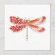 Dibujado artísticamente, dorado, libélula con joyas de color rojo y alas decoradas con rojo, floreciente, cerezo japonés con joyas sobre fondo blanco. Dragonfly de oro.