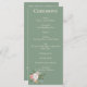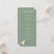 Una moda y una tarjeta de programa moderna con un rico fondo verde sabio acentuado por rosas blancas y eucalipto con elementos florales de color rosa, rosa y melocotón.