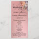 Este encantador programa está adornado con un precioso ramo de flores silvestres de acuarela; detalles de la ceremonia de boda y agradecimiento en la parte frontal con miembros del séquito nupcial en la parte posterior. Diseñado para coordinar con la colección Wildflower Wedding. Para cambiar detalles, haga clic en «Personalizar». Para mover el texto o cambiar el tamaño, la fuente o el color del texto, haga clic en «Haga clic para personalizar aún más»