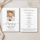 Personalice este sencillo y elegante programa con el nombre, la foto y el mensaje de su amado fallecido. Honre y celebre la vida de su ser querido con esta plantilla moderna y elegante. Texto y foto fáciles de personalizar. Nuestras más sinceras condolencias y oraciones están con ustedes en este momento tan difícil.