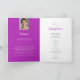 Dibujo de paloma morado rosa rosada Celebración del programa funerario de doble cara de vida con orden de servicio, obituario un poema de tu elección y gracias con el fondo conmemorativo código QR. El sencillo pero elegante programa, simplemente personalizar el texto de muestra y las fotos con sus propias fotos especiales y detalles del servicio. Hay otros colores disponibles y los programas se pueden crear por petición. Dibujo original y diseño de Sarah Trett para www.mylittleeden.