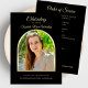 Este hermoso programa de funeral presenta la foto de su ser querido en la portada dentro de un arco con un marco de color dorado. Las palabras "Celebrando la vida de (NOMBRE)" aparecen encima de su foto. Debajo de su foto están las fechas y palabras de cariñoso recuerdo que puede agregar. En el reverso, está el orden del servicio que puede personalizar según su evento particular. Por favor, tenga cuidado de asegurarse de que todo quepa en el espacio proporcionado, ya que se imprimirá tal como lo ve en su pantalla. También puede personalizar un agradecimiento de la familia. derechos de autor Sympathy Thank You por Kathy Henis