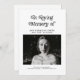 Honra a tu ser querido con este programa funerario mínimo retro foto en memoria amorosa negro y blanco. Con un diseño retro limpio e intemporal en blanco y negro clásico, este programa le permite incluir una foto, detalles de servicio, orden de eventos, lecturas y homenajes personales. Diseñado para ofrecer a los huéspedes un toque de elegancia y sencillez que celebra una vida bien vivida.