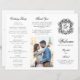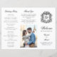 Estos programas de boda triplicados vienen como una hoja plana de papel que se dobla manualmente. El elegante escudo de monograma tiene las iniciales de la novia y el novio con el lujoso tipo de letra de guión en el frente. Los programas son perfectos para las ceremonias largas, con el orden de las ceremonias en los tres flaps interiores. El exterior tiene la fiesta de bodas, nota de agradecimiento, y una foto de la pareja feliz.