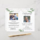 ¡POR HOMBRE O MUJER! Programa Fotográfico del Funeral de la Orden del Servicio. Presenta hojas de olivo color agua con marco falso dorado, una foto en la parte delantera y una foto familiar en la parte trasera. Utilice la herramienta Personalize para agregar su información y añadir de forma sencilla sus fotos. Por favor, visite mi colección de agradecimientos por la celebración de la vida.