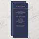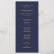 Este moderno y elegante programa de bodas presenta un texto de color rosa sobre un fondo azul medianoche, con una falsa banda de oro rosa en la parte superior.