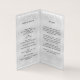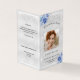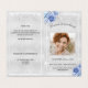 Un elegante programa de 4 páginas. Un fondo plateado falso, marcos plateados falsos, purpurina, chispas, florales azul claro y espacio para tu foto. Personalice y agregue el nombre, las fechas y el texto.