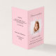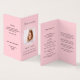 Un elegante programa de 4 páginas. Un fondo rosado jocoso. Personaliza y agrega una foto, nombre, fechas y tu texto. Rayos de luz blancos detrás de la foto.