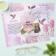 Programa conmemorativo del Programa de Funerales Bi-Fold Pink Hydrangeas Hummingbird, Celebración de la vida, Tributo - Carpeta del programa