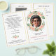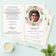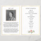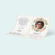 Un programa de funeral plegable que presenta una abundancia de guirnaldas de rosas rosadas que celebran la vida. Diseñado para ser impreso en ambos lados, la parte delantera muestra el nombre y una fotografía favorita en el marco ovalado con efecto dorado, mientras que el interior se puede editar con el orden del servicio o lo que desees. En un momento difícil, este hermoso y elegante diseño floral con bordes dorados es adecuado para una celebración del servicio de vida, un servicio conmemorativo de la iglesia religiosa o una ceremonia humanista. El efecto de lámina dorada FAUX es impreso y NO es metálico.