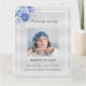Un elegante programa de 4 páginas. Un fondo plateado falso, marcos plateados falsos, flores azules claras, florales, espacio para tu foto en el frente. Personalice y agregue el nombre, las fechas y el texto.