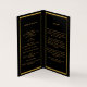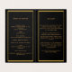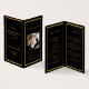 Un elegante programa de 4 páginas. Un fondo negro, un falso marco dorado y espacio para tu foto. Personalice y agregue el nombre, las fechas y el texto.