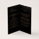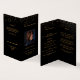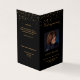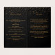 Un elegante programa de 4 páginas. Un fondo negro, chispas doradas y espacio para tu foto. Personalice y agregue el nombre, las fechas y el texto.