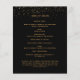 Un elegante programa de 2 páginas. Un fondo negro, chispas doradas y espacio para tu foto. Personalice y agregue el nombre, las fechas y el texto.