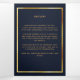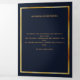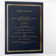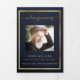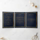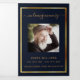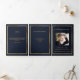 Un elegante programa triple. Un fondo azul oscuro, un marco dorado falso y espacio para tu foto. Personalice y agregue el nombre, las fechas y el texto.