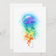Grandes medusas de azulejo brillantes, de dibujos artísticos, con largos tentáculos en blanco, pintadas con fondo multicolor de acuarela. Mariscas arcoiris.