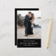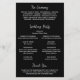 Programa de bodas moderno con un diseño mínimo con tu foto favorita sobre un fondo negro. La parte trasera tiene su orden de ceremonia, fiesta de boda y mensaje de agradecimiento en una combinación de fuentes sans serif simples y un guión elegante. Este programa de moda sería genial para un boda de Halloween o temática de gótico.