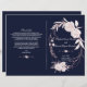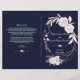 Elegante diseño Rosa Gold White Flowers Geométrico Boda. En la parte posterior, con un fondo azul oscuro, se han colocado elegantes flores blancas de rosa falso, marco geométrico de oro rosa, divisor floral de oro rosa. Utilice la herramienta Personalize para agregar su información, cambie el color de fondo. Para ver los elementos que coincidan, por favor, visite mi colección de flores blancas de oro Rosa.