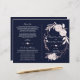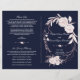 Elegante diseño Rosa Gold White Flowers Geométrico Boda. En la parte posterior, con un fondo azul oscuro, se han colocado elegantes flores blancas de rosa falso, marco geométrico de oro rosa, divisor floral de oro rosa. Utilice la herramienta Personalize para agregar su información, cambie el color de fondo. Para ver los elementos que coincidan, por favor, visite mi colección de flores blancas de oro Rosa.